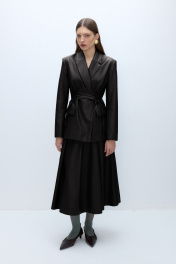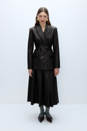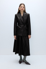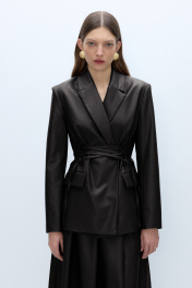 Черный жакет из экокожи со шнуровкой и расширенными плечами PiRS 5671 черный