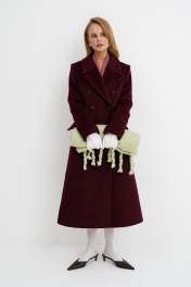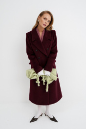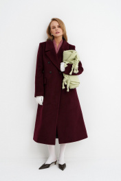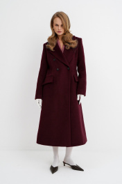 Демисезонное приталенное пальто X-силуэта на подкладке PiRS 5780 бургунди
