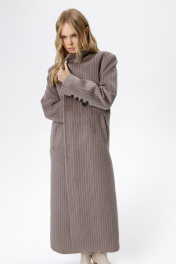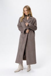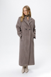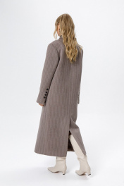 Пальто свободного силуэта из ткани в полоску. Детали: прямой силуэт, свободный покрой, расширенная линия плеч, пиджачный воротник, двубортная застежка на петли и пуговицы, рукава втачные со шлицей, функциональные карманы, спинка со средним швом и высокой шлицей, пальто на подкладке. Длина по спинке около 124,5 см, длина рукава около 61 см
