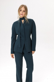 Брюки-клеш со стрелками. Детали: притачной пояс со шлевками, передние половины с заутюженными стрелками, застежка на молнию и потайные крючки, боковые карманы. Задние части брюк с вытачками и заутюженными стрелками. Пояс брюк без резинки. Длина по боковому шву с поясом около 112 см в размерах 40-46 и около 115,5 см в размерах 48-52. Длина по внутреннему шву около 82 см. Розовый, еловый (приобрести жакет с фото можно по арт. 6291), темно-синий (приобрести жакет с фото можно по арт. 6368, 6602), белый (приобрести жакет с фото можно по арт. 6291, 6368, 6539, 6540, 6573), персиковый и коричневый (приобрести жакет с фото можно по арт. 6539, приобрести жакет с баской с фото можно по арт. 6540), оливковый (приобрести жакет с фото можно по арт. 6573), черный (приобрести жакет с фото можно по арт. 6573)