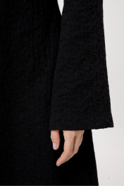 Трикотажное макси-платье со шнуровкой. Детали: полуприлегающий силуэт, нагрудные вытачки, талиевые вытачки по спинке, втачные удлиненные рукава. Длина платья по спинке 125 см, длина рукава около 62 см