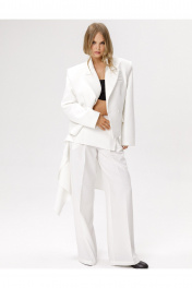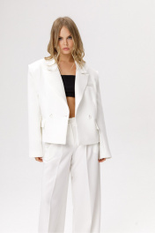 Укороченный оверсайз жакет в полоску с необработанными проймами. Детали: жакет прямого силуэта, пиджачный воротник, двубортная застежка на две петли и пуговицы, функциональные карманы, спинка с фигурной кокеткой, рукава втачные, жакет на подкладке. Длина по спинке около 55 в размерах 40-46 и около 56,5 см в размерах 48-52, длина рукавов около 61 см. Приобрести брюки с фото можно по арт. 6378, пояс-баску по арт.6379