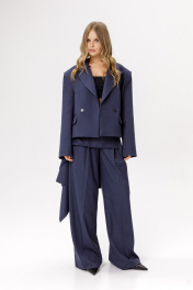 Юбка-баска килт в полоску. Детали: притачной пояс с застежкой на петлю и пуговицу. Приобрести жакет с фото можно по арт. 6377, брюки по арт.6378
