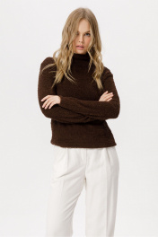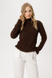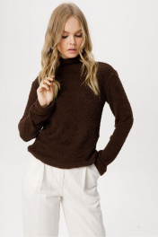 Джемпер из фактурного трикотажа с цельнокроеной стойкой. Детали: спущенные плечи, полуприлегающий силуэт, втачные длинные рукава. Длина от плеча 57 см в размерах 40-46 и около 59,5 см в размерах 48-52, длина рукава около 60 см