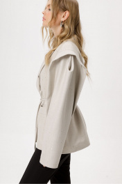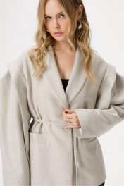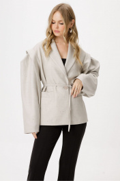 Оверсайз жакет со съёмным поясом. Детали: прямой силуэт, удлинённая линия плеча, втачной одношовный рукав с ассиметричными складками, функциональные карманы, центральная застёжка на 1 пуговицу, жакет на подкладке. Длина по спинке в размерах 40-46 около 67 см, в размерах 48-52 около 70 см, длина рукава около 61 см