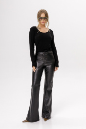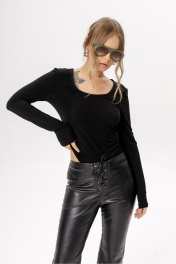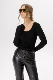 Трикотажный полупрозрачный джемпер со съемным шарфиком. Детали: джемпер укороченный, приталенный силуэт, глубокий вырез горловины переда, втачные удлиненные рукава с плечевыми накладками. Длина джемпера по спинке около 46 см в размерах 40-46 и около 48,5 см в размерах 48-52, длина рукава около 64 см.