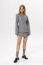 Мини шорты-юбка из костюмной ткани (приобрести блузу с фото можно по арт. 6552, приобрести жакет к шортам по арт. 6527). Детали: шорты длины мини на запах, застежка на потайную молнию в боковом шве. Длина по боковому шву с поясом около 37 см в размерах 40-46 и около 40 см в размерах 48-52 см