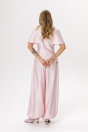 Блуза приталенного силуэта и цельнокроеной пелериной (приобрести брюки с фото можно по арт. 6671). Детали: прилегающий силуэт, талиевые вытачки по переду и спинке, цельнокроеная горловина стойка, потайная молния в среднем шве спинки, блуза на подкладке. Длина блузы по спинке около 62 см в размерах 40-46, около 65 см в 48-52.