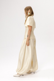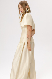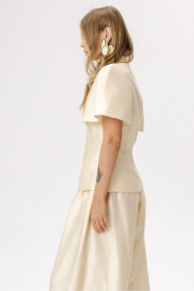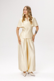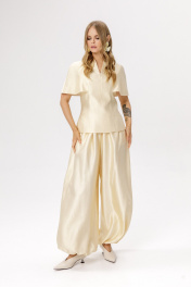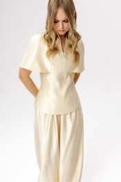Блуза приталенного силуэта и цельнокроеной пелериной (приобрести брюки с фото можно по арт. 6671). Детали: прилегающий силуэт, талиевые вытачки по переду и спинке, цельнокроеная горловина стойка, потайная молния в среднем шве спинки, блуза на подкладке. Длина блузы по спинке около 62 см в размерах 40-46, около 65 см в 48-52.