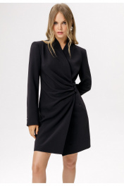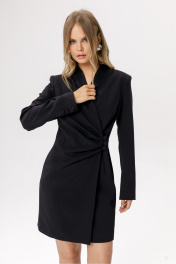 Асимметричное приталенное мини-платье. Детали: полуприлегающий силуэт, перед с асимметричными складками, воротник с цельнокроенной стойкой, спинка со средним швом и талиевыми вытачками, рукава втачные двухшовные с имитацией шлицы и декоративными пуговицами, платье застёгивается на три навесные петли и пуговицы по переду. Длина по спинке в размерах 40-46 около 86 см, в размерах 48-52 около 89 см, длина рукава около 62 см