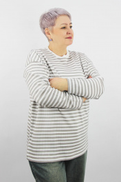 Джемпер второго слоя одежды, прямого силуэта, с длиным рубашечным рукавом. Круглый вырез горловины обработан притачной двойной бейкой.