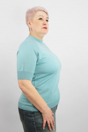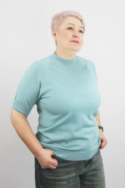 Джемпер женский,второго слоя одежды,прилегающего силуэта с коротким рукавом-реглан.Круглый вырез горловины закеттлеван бейкой-ластик 1х1 высотой в гот. виде 4,0см+-0,5см ( двойная полукетлевка). Низ стана и рукавов заработан ластиком 1х1 высотой в гот. виде 6,0+-0,5 -стан,6,5см+-0,5-рукав.По краю рукава проложена "Новинка" 110т.