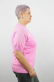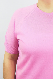 Джемпер второго слоя одежды с коротким рукавом-реглан. Круглый вырез горловины закеттлёван бейкой-сдвоенная кулирная гладь высотой в гот. виде 1,5+0,2см.