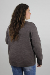 Жакет женский второго слоя одежды, прямого силуэта, с удлиненной линией плеча и длдинным втачным рукавом.Перед с цельнокроеным подбортом и карманами в боковых швах. Спинка цельная.Низ стана и рукавов заработаны сдв. кул. гладью. На переде возле кармана металическое и декоративное украшение.