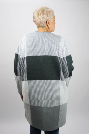 Жакет второго слоя одежды, прямого силуэта, без бокового шва. Рукав втачной длинный. Горловина V- образная. На деталях переда настрочены накладные карманы. Застежка на петли и двухпрокольные матовые пуговицы Ø25 мм 1-го цвета. Количество пуговиц - 4+1 шт. на рост 158/164 и 5+1шт. на рост 170/176.