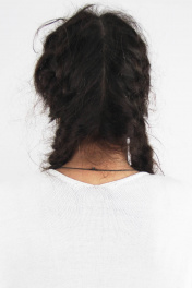 Жакет второго слоя одежды регулярный, прямого силуэта с рубашечным рукавом 7/8. Горловина регулярная Y-образная.