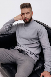 Демисезонный вязаный свитер с двойным воротником стойкой Полесье С3012-15 5С1749-Д43 170,176 серый
