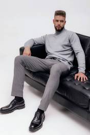 Свитер незначительно заужен книзу с длинным рукавом. Круглый вырез горловины обработан двойным воротником стойкой, высотой в готовом виде 6,5см+-0,5.