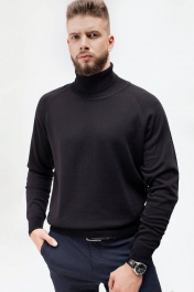 Мужской свитер прямой реглан с отложным воротником Полесье С3070-17 7С1581-Д43 170,176 глубокий_черный