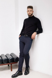 Свитер прямого силуэта с длинным втачным рукавом. Воротник двойная ластичная стойка (полукеттл) высотой 6,5 см ±0,2см в готовом виде.