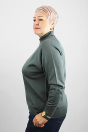 Свитер прямого силуэта с длинным рукаом "реглан". Низ изделия и рукавов заработан ластиком, высотой в готовом виде 6,0см+-0,5см(станы),6,5+-0,5см (рукава). Воротник - двойная ластичная стойка 5,5см+-0,5см в готовом виде.