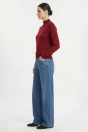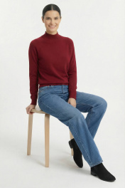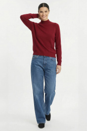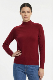 Свитер прямого силуэта с длинным рукаом "реглан". Низ изделия и рукавов заработан ластиком 1х1. Воротник - двойная ластичная стойка