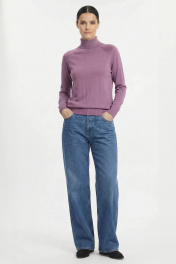 Свитер прямого силуэта с длинным рукаом "реглан". Низ изделия и рукавов заработан ластиком 1х1. Воротник - двойная ластичная стойка