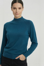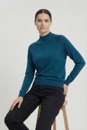 Демисезонный вязаный свитер прямого силуэта с воротником-стойкой Полесье С3316-15 5С1754-Д43 158,164 морская_волна