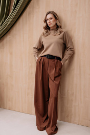 Свитер прямого силуэта с длинным рукаом "реглан". Низ изделия и рукавов заработан ластиком 1х1. Воротник - двойная ластичная стойка
