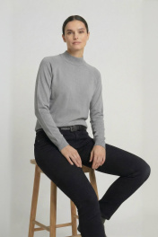 Свитер прямого силуэта с длинным рукаом "реглан". Низ изделия и рукавов заработан ластиком 1х1. Воротник - двойная ластичная стойка