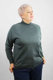 Свитер прямого силуэта с длинным рукаом "реглан". Низ изделия и рукавов заработан ластиком, высотой в готовом виде 6,0см+-0,5см(станы),6,5+-0,5см (рукава). Воротник - двойная ластичная стойка 5,5см+-0,5см в готовом виде.