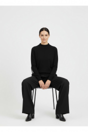 Свитер прямого силуэта с длинным рукаом "реглан". Низ изделия и рукавов заработан ластиком 1х1. Воротник - двойная ластичная стойка