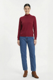 Свитер прямого силуэта с длинным рукаом "реглан". Низ изделия и рукавов заработан ластиком 1х1. Воротник - двойная ластичная стойка