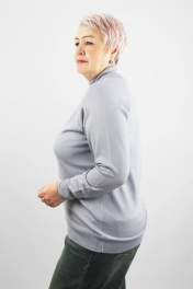 Свитер прямого силуэта с длинным рукаом "реглан". Низ изделия и рукавов заработан ластиком, высотой в готовом виде 6,0см+-0,5см(станы),6,5+-0,5см (рукава). Воротник - двойная ластичная стойка 5,5см+-0,5см в готовом виде.