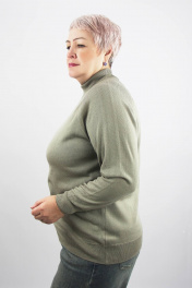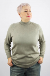 Свитер прямого силуэта с длинным рукаом "реглан". Низ изделия и рукавов заработан ластиком, высотой в готовом виде 6,0см+-0,5см(станы),6,5+-0,5см (рукава). Воротник - двойная ластичная стойка 5,5см+-0,5см в готовом виде.