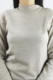 Свитер прямого силуэта с длинным рукаом "реглан". Низ изделия и рукавов заработан ластиком 1х1. Воротник - двойная ластичная стойка