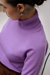 Свитер прямого силуэта, второго слоя одежды, с длиным рукавом реглан. Круглый вырез горловины обработан высоким ластичным воротником-ластик высотой в готовом виде 16см+-1,0см в том числе сдвоенная кулирная гладь 1,0см+-0,2см.