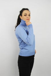 Свитер прямого силуэта, второго слоя одежды, с длиным рукавом реглан. Круглый вырез горловины обработан высоким ластичным воротником высотой в готовом виде 16см+-1,0см