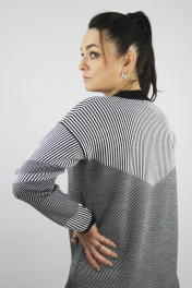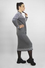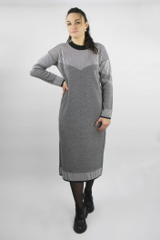 Платье женское, второго слоя одежды. Прямого силуэта, со спущенной линией плеча, с зауженным книзу рукавом с прямой проймой. Круглая горловина закеттлевана бейкой высотой в гот. виде 4,5см из них 3,5 ластик 2х2 + чулок 1+-0,2 см. По краю бейки проложена "Новинка" 110т. Низ рукава и стана заработан чулком выс. 1+-0,2 см.
