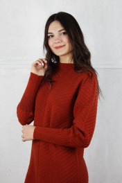 Платье, второго слоя одежды, с длинным цельновывязаным рукавом и цельновывязаной горловиной.