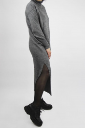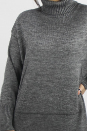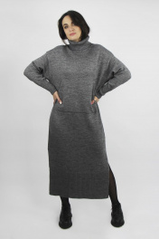 Платье женское второго слоя одежды,с боковыми разрезами , длина миди. Со спущенной линией плеча. Высота воротника 22+-0,5 см. С целновывязанным карманом "кенгуру".