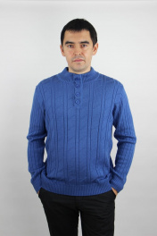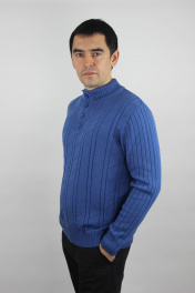 Джемпер мужской второго слоя одежды прямого силуэта с длинным втачным рукавом. Круглый вырез горловины обработан двойным ластичным воротником воротником (полук.) ластик 2х2 выс. в гот. виде 7,0+-0,5 см. По горловине выполнена застежка на петли и пуговицы на планка ластик выс. в гот. виде 4,0+-0,3 см.
