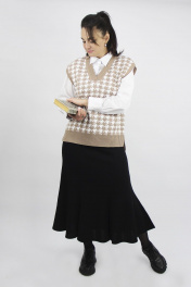 Юбка длинная силуэта "годе". Верхний срез юбки обработан притачным поясом с прокладывание эластичной тесьмы. Низ изделия подогнут