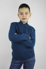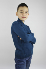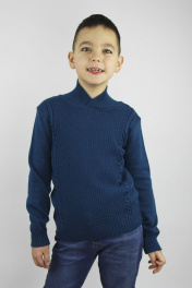 Джемпер для мальчика второго слоя одежды прямого силуэта с длинным втачным рукавом. Горловина обработана притачным воротником