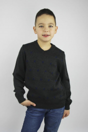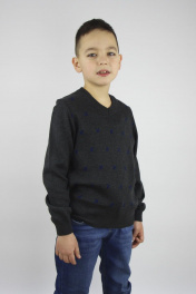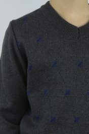 Джемпер второго слоя одежды, полурегулярный, прямого силуэта. Рукав втачной длинный. V- образный вырез горловины обработан прикеттсеваной двойной бейкой ластик 1х1.