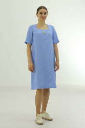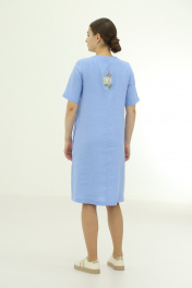 Модель трапециевидного кроя, средний шов по спинке. Вырез горловины "каре". Декор: вышивка на сеточке Тип рукава:короткий, втачной. Тип карманов:в боковых швах. Вид застнжки: без застежки
