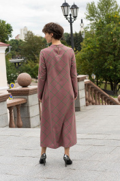 Платье- силуэт свободный, круглый вырез горловины Тип рукава: втачной, длинный, зауженный книзу Тип карманов: в боковых швах Вид застежки: петля и пуговица