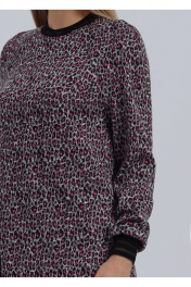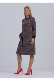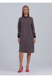 Платье из трикотажного полотна без подкладки длиной ниже колена. Платье А-силуэта с цельнокройной спинкой. Перед с вытачками в области груди. Рукав-реглан заканчивается манжетой из тонкого довяза. Горловина округлой формы, обработанной таким же довязом черного цвета. По низу широкая отделочная строчка.