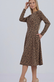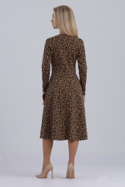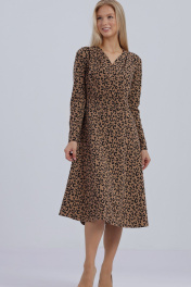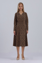 Платье - силуэт приталенный, клеш от талии, лиф отрезной, перед на запах с втачным поясом. Декор: бантовые складки от плечевого шва. Тип рукава: втачной, длинный. Тип карманов: в боковых швах. Вид застежки: без застежки.