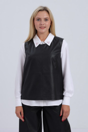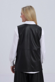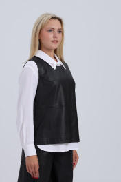 Жилет - силуэт свободный, круглый вырез горловины, ассиметричный низ, боковые разрезы Тип рукава: без рукавов Тип карманов: без карманов Вид застежки: без застежки